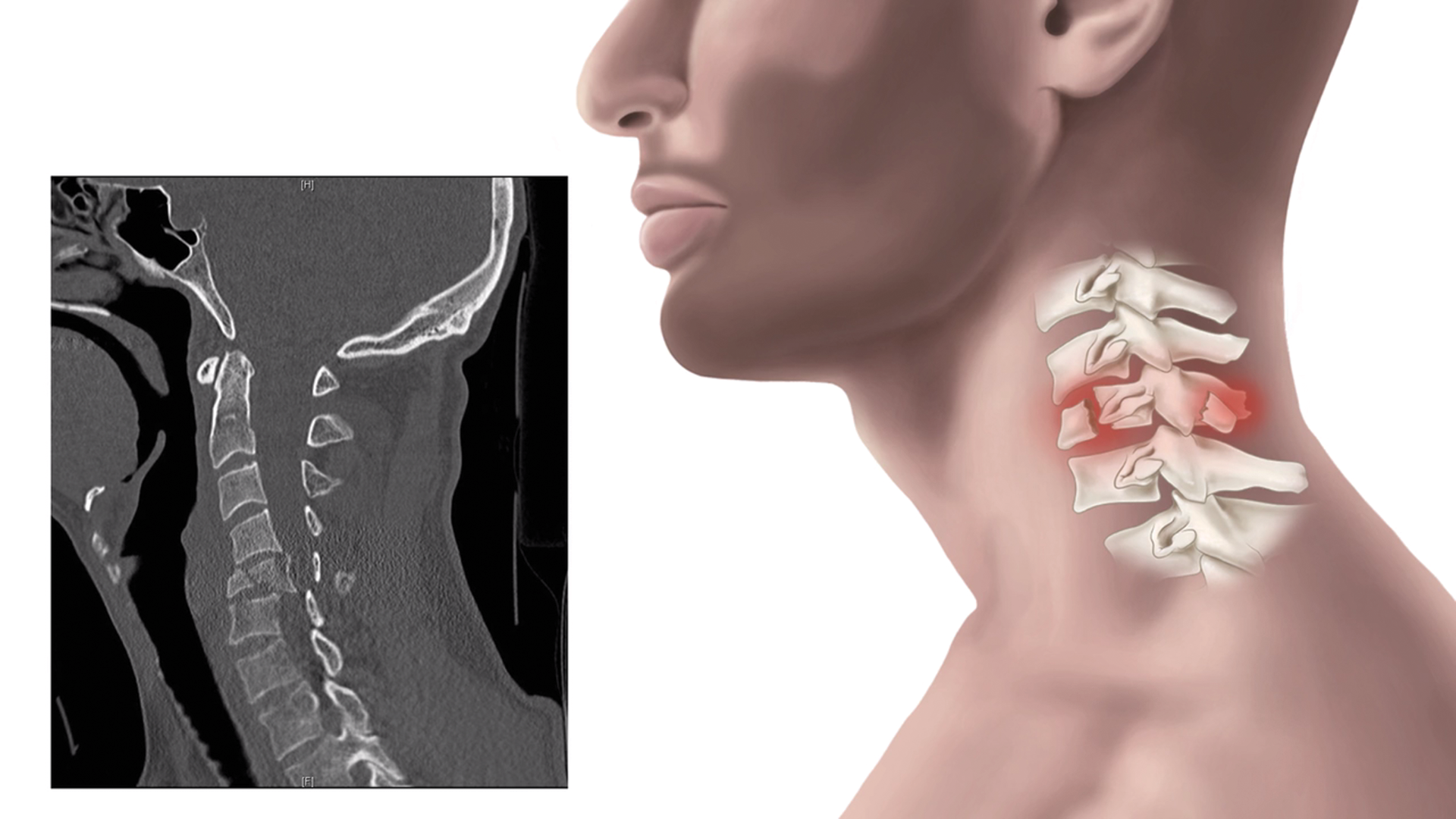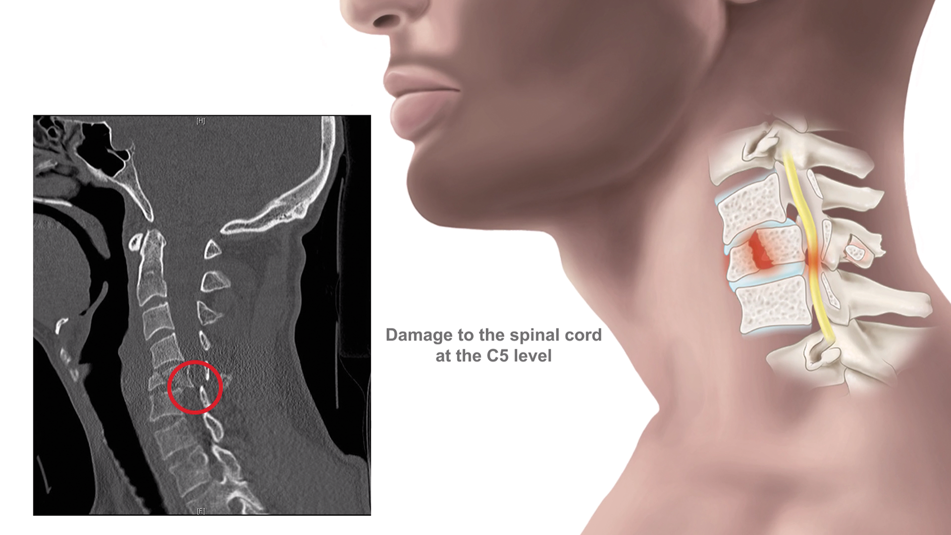 Stills from Medicolegal animation for John Doe, Damage to C5 due to whiplash